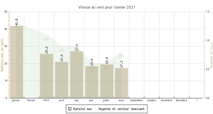 | aout | 12.0 °C | 14.8 °C | 29.9 °C | 25.8 °C | 18.8 °C | 0.8 km/h | 17.3 km/h | 155 |